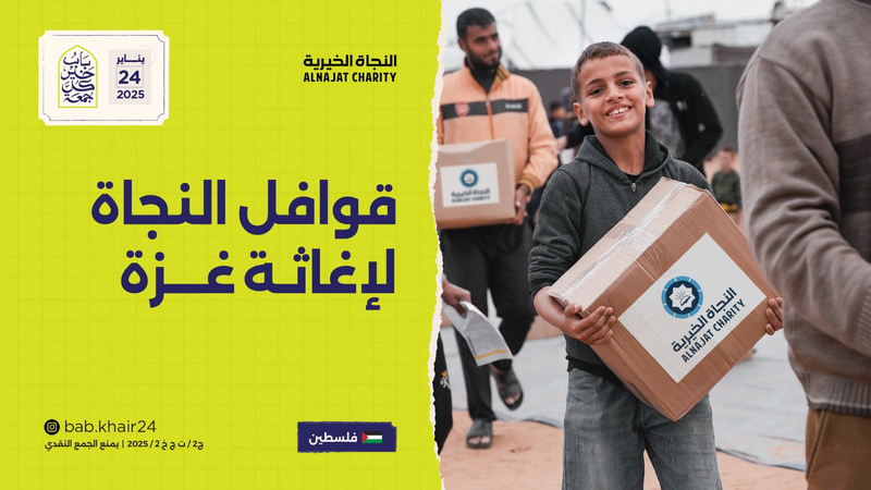النجاة الخيرية تطلق “قوافل النجاة لغزة” ضمن مشاريع باب خير كل جمعة